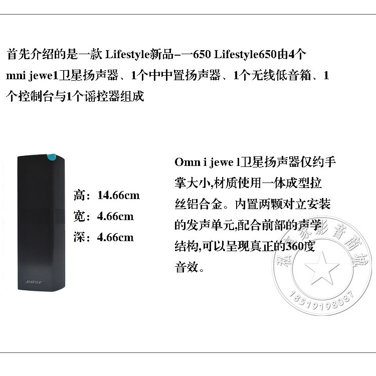 - Omnijewel Speaker (каждый):4,67 см х 14,66 см х 4,67 см (ширина x высота x Глубокая) (0,35 кг)