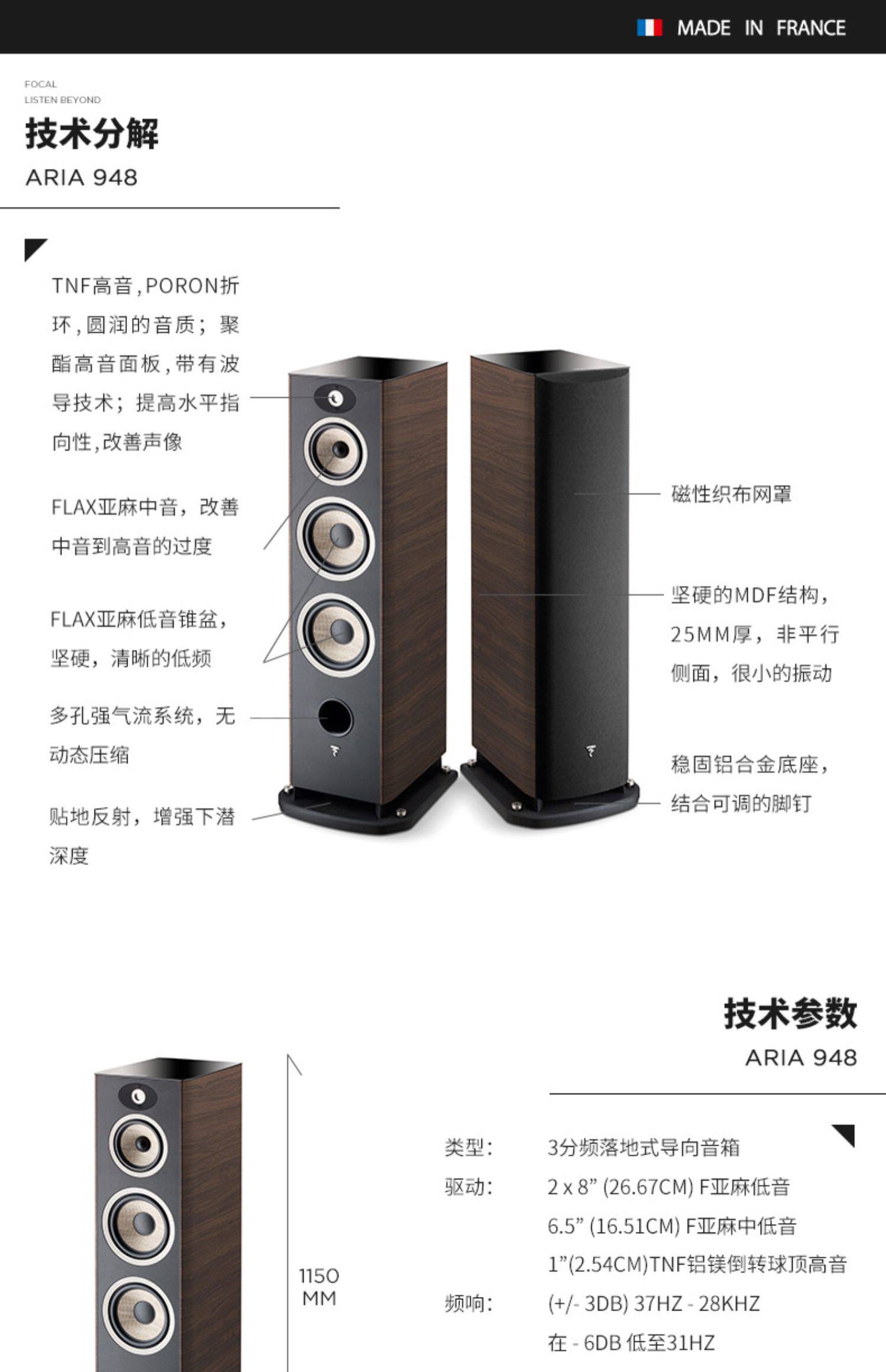 France Focal Aria 948 Everbi -покрывающий полевой семейный кинотеатр Double 8 -Inch Main Box Sound