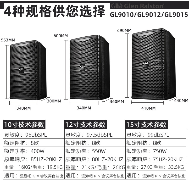 Glen ralston/格伦士顿 Колонки для танцевального шоу, дорожный комплект, 101215 дюймов, 15 дюймов