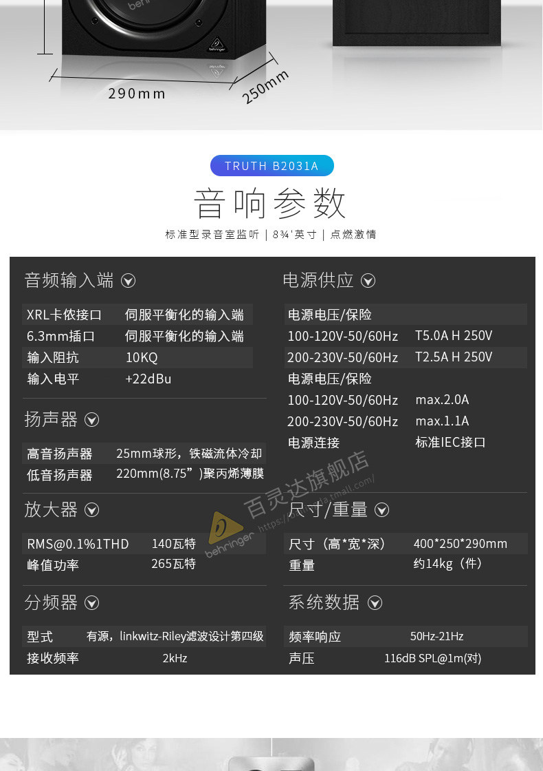 BEHRINGER/百灵达 Колонки, 2031A, 2030A, 6 дюймовые, 8, 8 дюймов