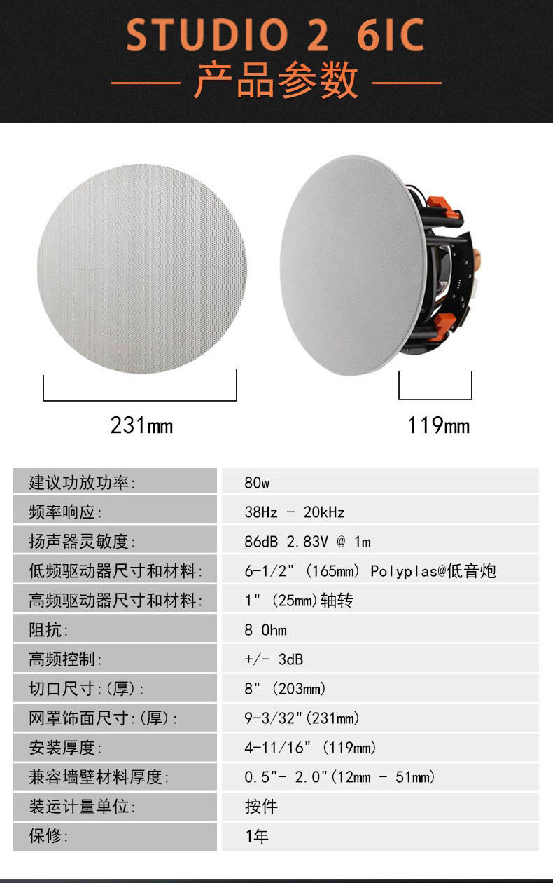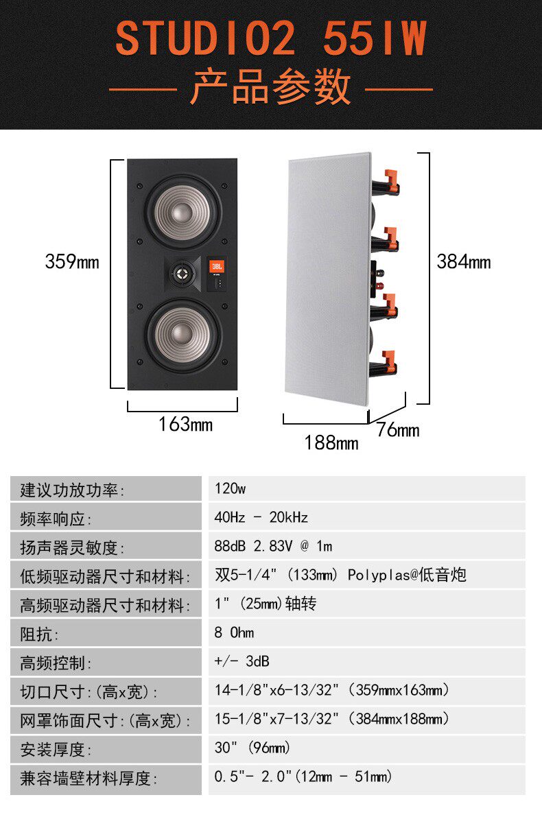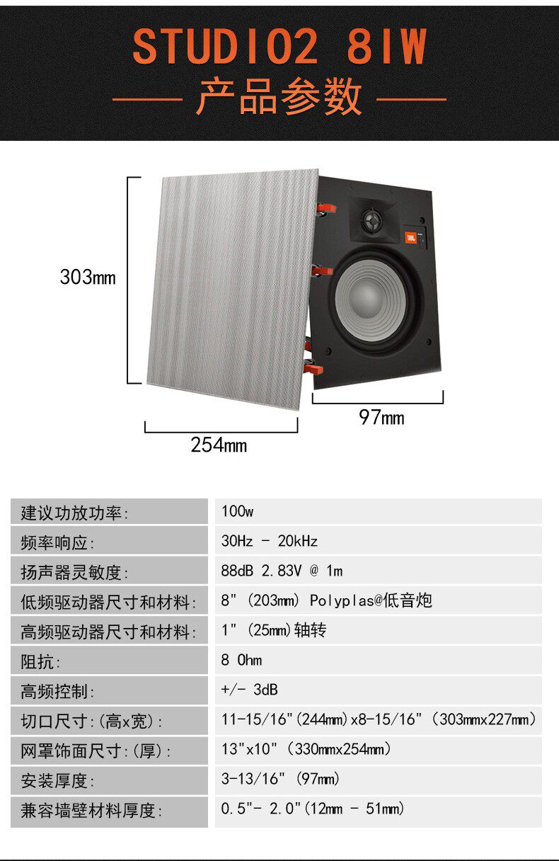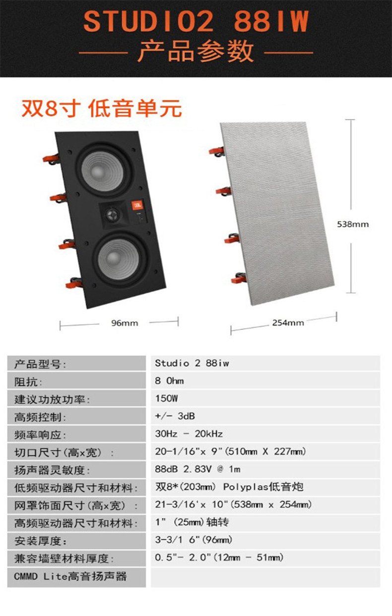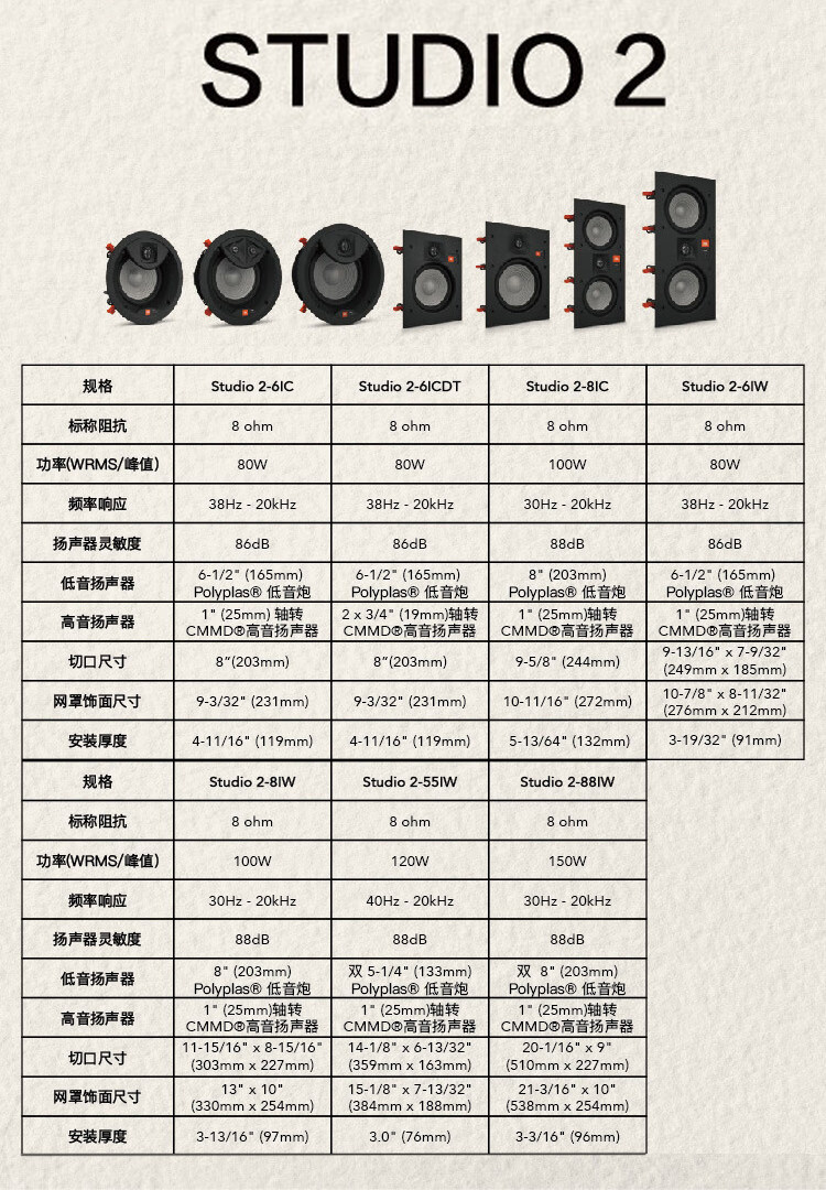 JBL Studio2 6IC/8IC/6IW/8IW/55IW Panorama Встроенный встроенный звуковой динамик