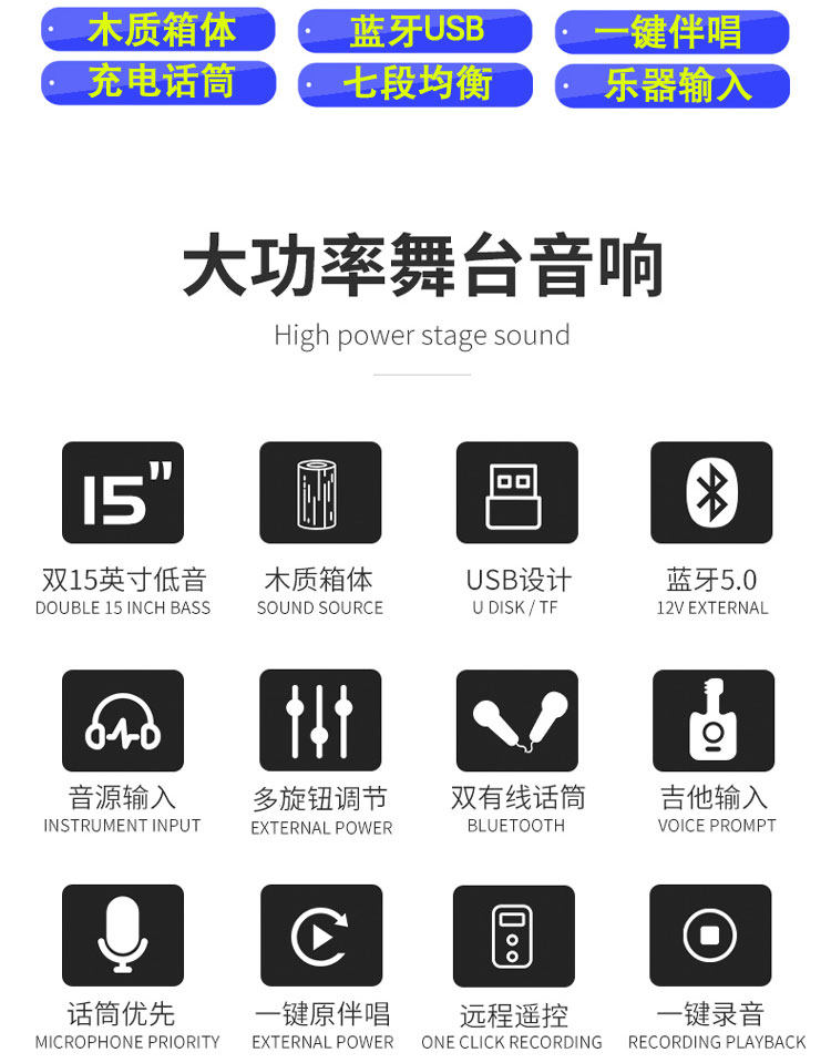 Haldi Double 15 -INCH Active Disceer High -сила на открытом воздухе Square Speed Shop Shop Wedding Set Audio
