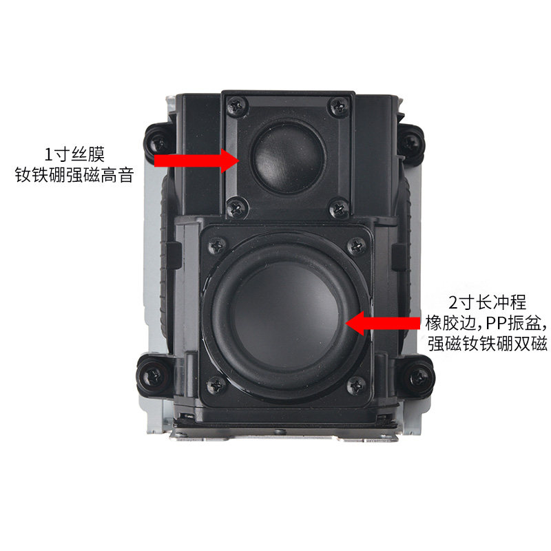 Головорез в костюме с элитной и властной внешностью, элегантный, но полный мускулов.1-дюймовый твитер с шелковым куполом, диаметр диафрагмы 2,6 см, сильный магнит из редкоземельного металла NdFeB, хорошая текстура, толстые материалы, очень качественный.2-дюймовый полипропиленовый конус, диаметр конуса 5,2 см, резиновый эластичный край, длинноходовой полипропиленовый конус, сильный магнит из редкоземельного металла NdFeB, двойные сердечники или двойные магниты, 20-жильная звуковая катушка, многослойная утолщенная катушка.Двусторонняя диафрагма для усиления низких частот, 1,75 x 2,5 дюйма, примерно 4 x 6,3 см, резиновые эластичные края с усиленными ребрами и металлическим противовесом посередине.