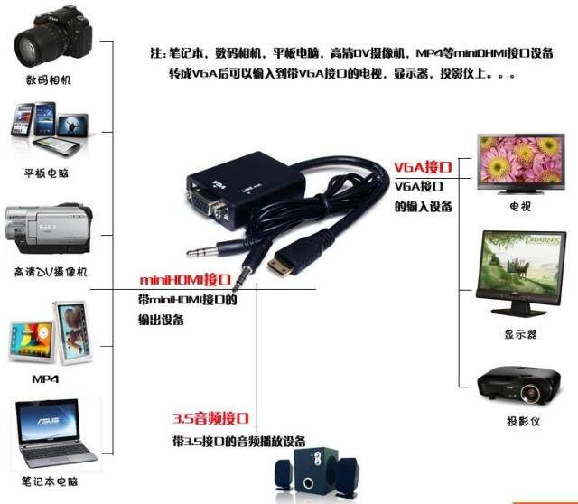 Высококачественный мини -HDMI в VGA Converter с аудио выходным