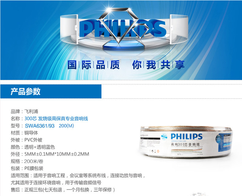 Philips/飞利浦 SWA6361 Динамик кабельного динамика окружает Pure Copper 300 Core Doperment Engineering Line