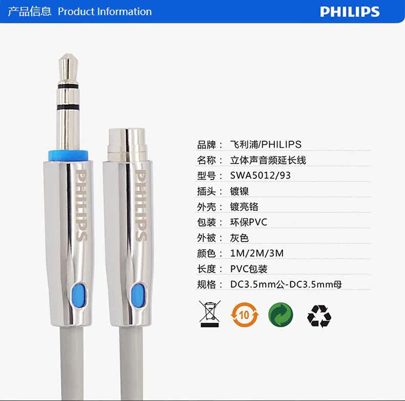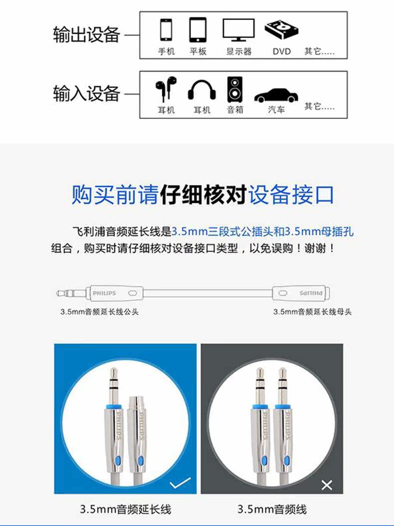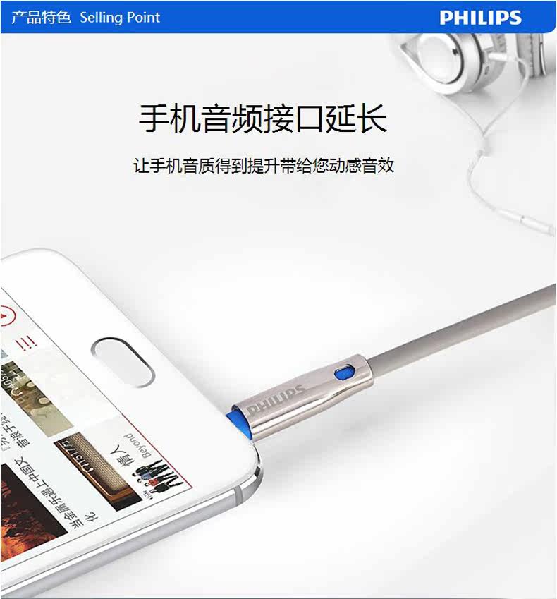 Philips/飞利浦 Удлинитель, ноутбук, мобильный телефон, длинные наушники, 3.5мм