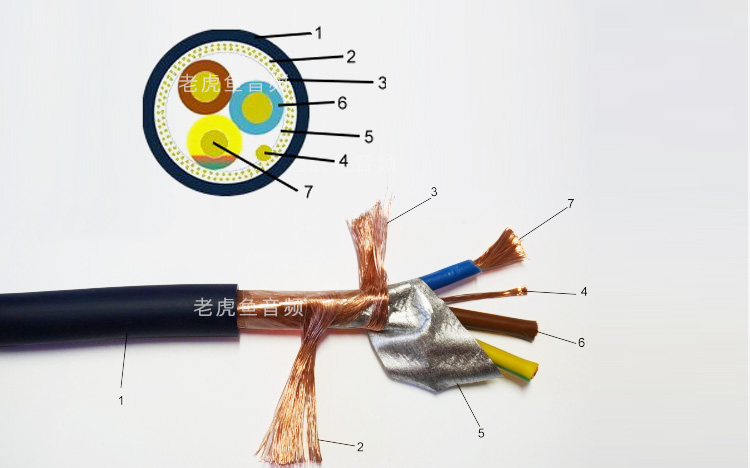 | 7 = Conductor 3x: | 105x0,25mmØ bare OFC copper wires 2,97mmØ 5,50mm² | |