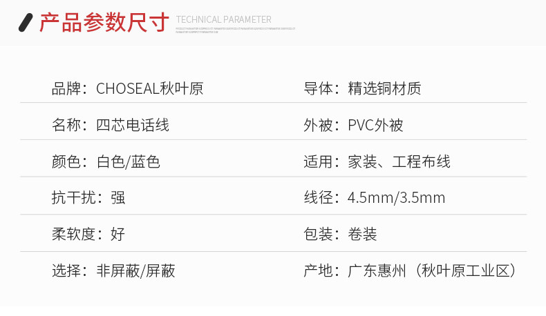 Choseal/秋叶原 Круглый медный телефон, фиксаторы в комплекте, 100м, 200м