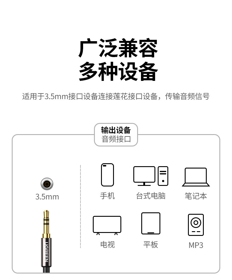 绿联 Аудиокабель 1/2 3,5 мм с двойным разъемом Lotus RCA для компьютера, мобильного телефона, подключенного к универсальному усилителю мощности сабвуфера
