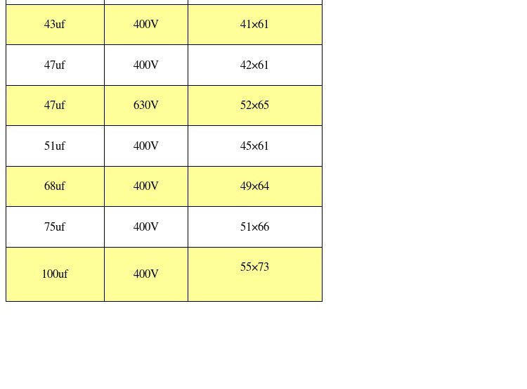 | Цвет: | 8.2uf 400V, 9.1uf 400V, 10uf 400v, 12uf 400V, 15uf 400V, 18uf 400V, 20uf 400V, 22uf 400V, 27uf 400V, 30uf 400V, 33uf 400V, 39uf 400V, 43uf 400V, 47uf 400V, 47uf 630v, 51uf 400V, 68uf 400V, 75uf 400V, 100uf 400V |