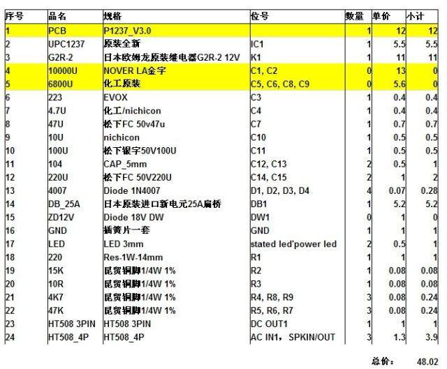 Таблица компонентов версии 3.0 не включает в себя большой электролиз, который составляет 48 юаней за набор.