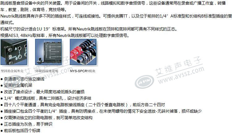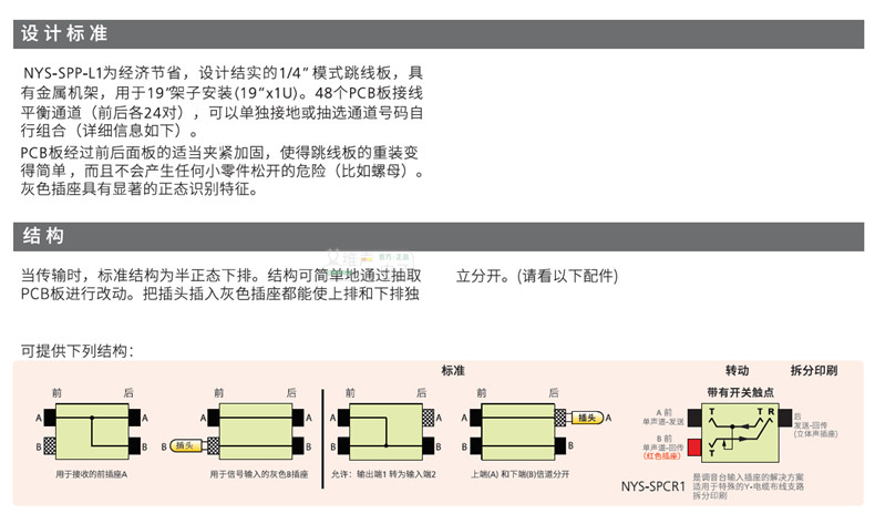 NYS-SPP-L-это экономические сбережения, а дизайн-1/4”Модель прыжков с металлическими стойками, используемая для 19”Установка рамы (19”X1u).Каждый из 48 каналов проводки печатной платы (двадцать по четыре пары каждый до и после) подходит для сбалансированных сигналов.Благодаря давлению, плата печатной платы безопасно расположена между передней и задней панелями, что упрощает переустановку доски прыжков, и она не даст риска ослабления (например, гайка).Серая гнезда имеет значительные нормальные функции идентификации.