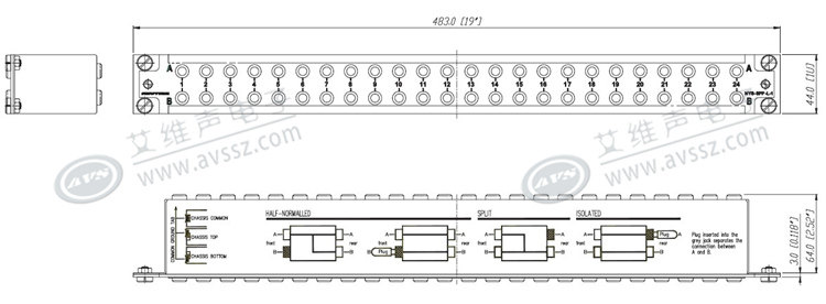 Конструкция механического размера подходит для 1U 19”Стандартная кадр.Все прыжки с нейтриком находятся в верхнем ряду и в нижнем рядуОба могут иметь разные стили нормального.