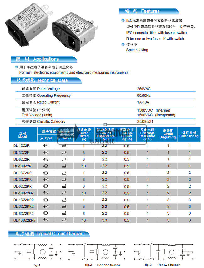 DL-6DZ2KR 220V 6A Отличный личный отдельный электрический исходный фильтр 250VAC Переключатель и страхование