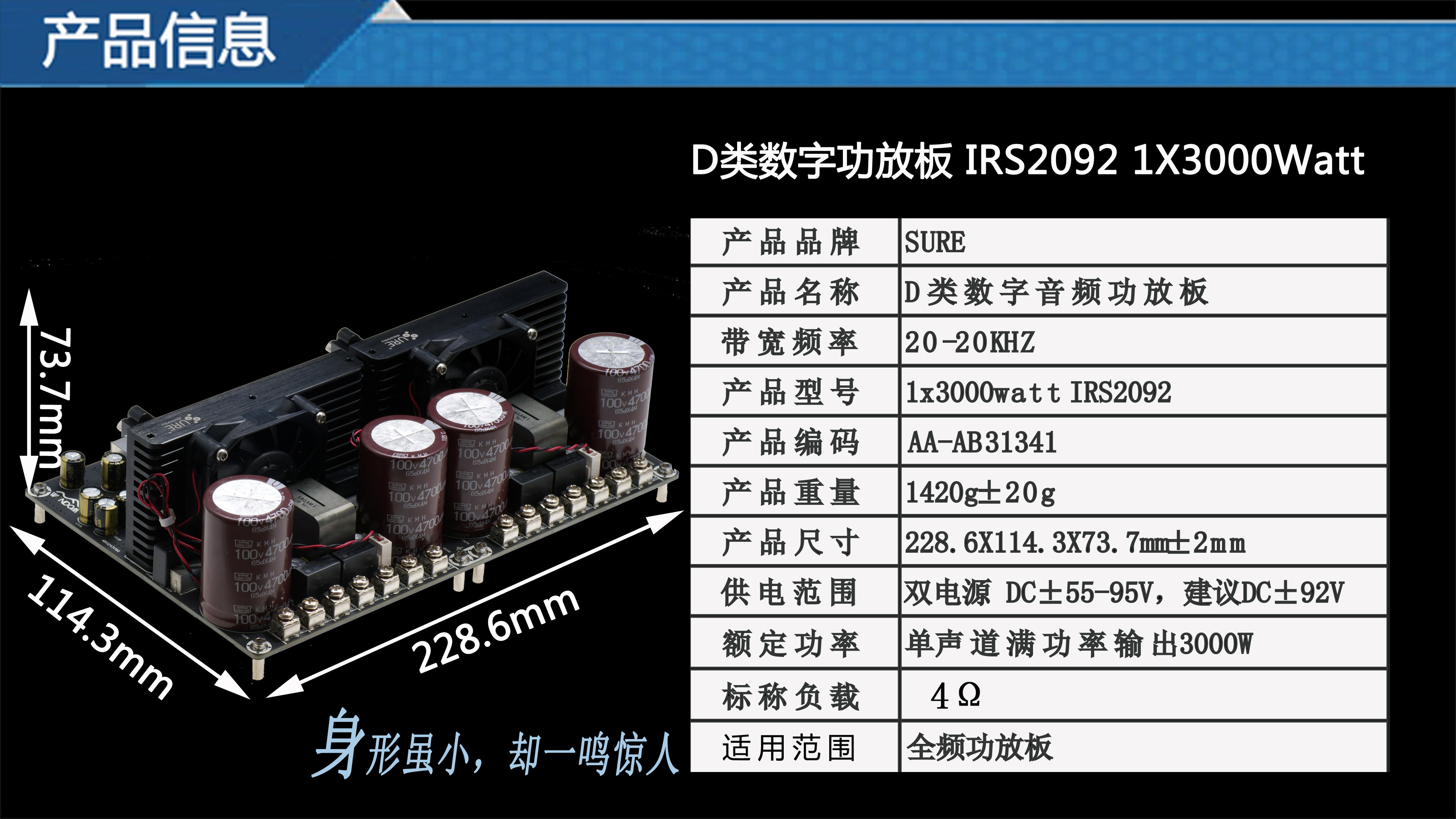 Конечно 1x3000W IRS2092D Цифровая панель сцены KTV High -сила готовый сабвуфер