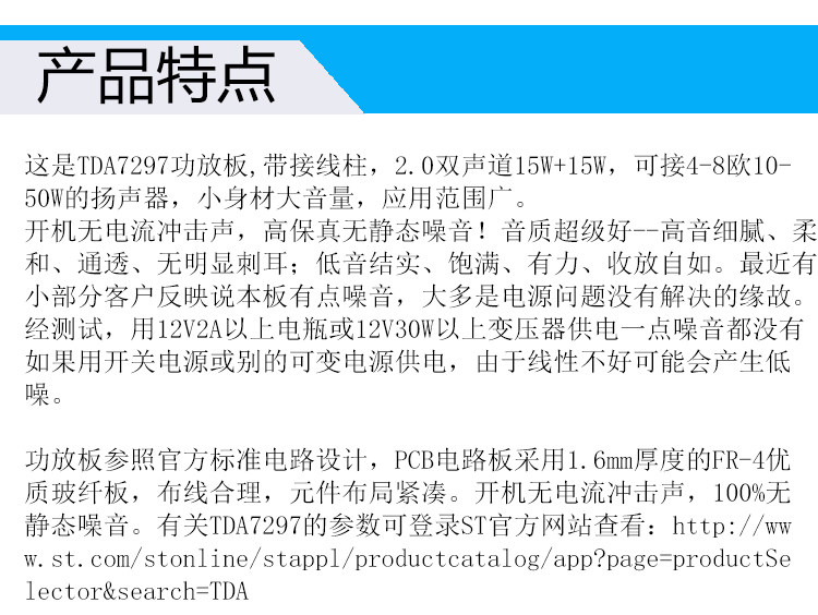 Импортированный TDA7297 Усиная плата Digital Workplace Двухканал шума 12V готовый усилитель (Board)