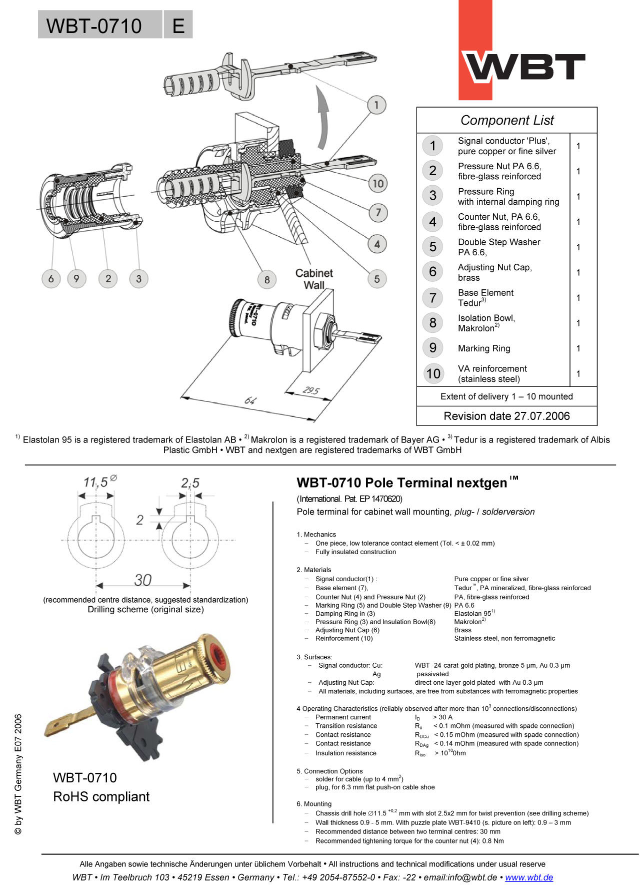 Основанный в 1985 году, WBT занимался исследованиями и разработками и запускает различные виды аксессуаров подключения и постепенно устанавливает репутацию и популярность.Для этого знаменитого продюсера привязанности в Эссене, Германия, с гордостью предоставляется высококачественные устройства соединения для Hi-End Audio.После многих лет разработки WBT постепенно стал стандартом для подключения терминального оборудования сегодня.В настоящее время деловая область, участвующая в WBT, охватывает электронные изготовления (производство электричества), производители кабелей, производители громкоговорителей и другие полупрофинируемые продукты или промышленность для переработки. Он не будет продаваться отдельно на рынке. При выборе аудиопродуктов, некоторые потребители. часто покупаются, потому что у продукта есть интерфейсы WBT.