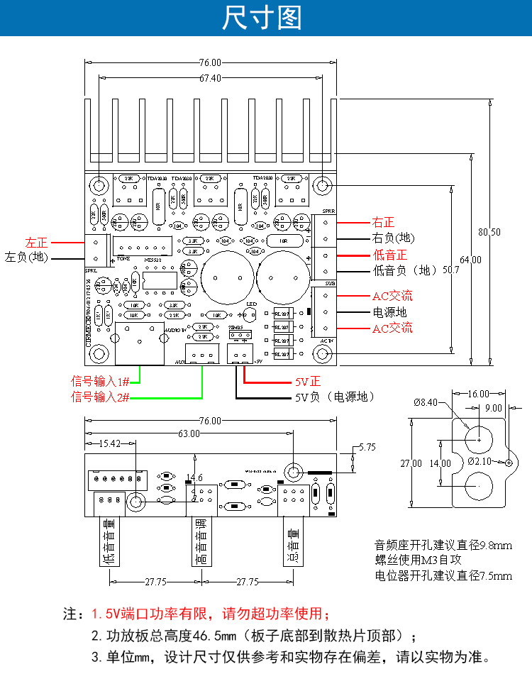 TDA2030A Fever Hifi Ultra -Heevy Bass 2.1 Computer High -Sower 3 -Channel Bass Cannon помещается в доску