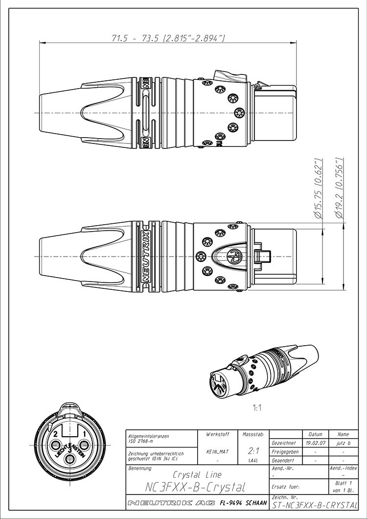 Neutrik NC3FXX-B Швейцария Nestuch Трехъядерный XLR Capital Black Gold Balance Balance Mother Plug