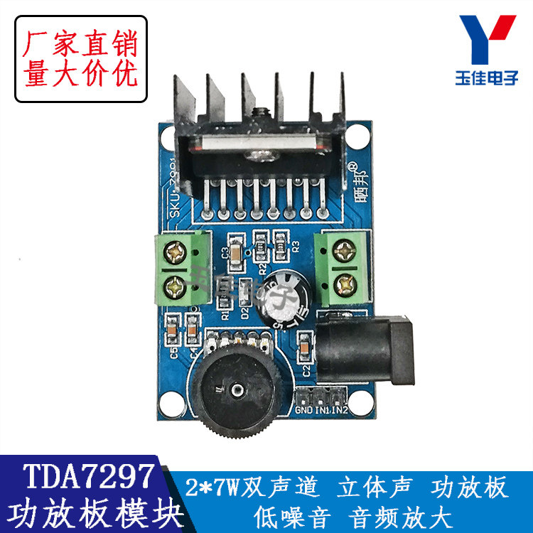 [1、板载TDA7297音频功放芯片,双声道15W+15W,适合4-8欧10-50W的扬声器使用]