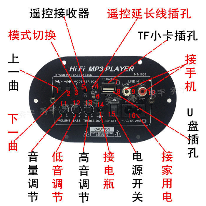 1068BT Bluetooth Plug -In Low Cannon Plate 6 -INCH 8 -INCH 12V24V220V Транспортный хост автомобиля