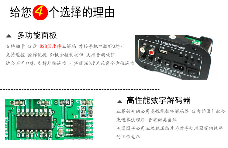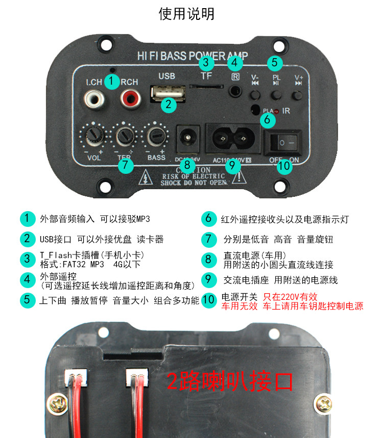 Цифровое транспортное средство с высокой мощной лихорадкой цифровой бас -пистолет -в карте USB Demote Control 12V24V220V