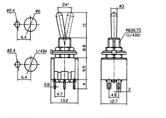 Небольшой кнопку переключатель на открытую диаграмму отверстия: открытый диаметр отверстия 6 мм