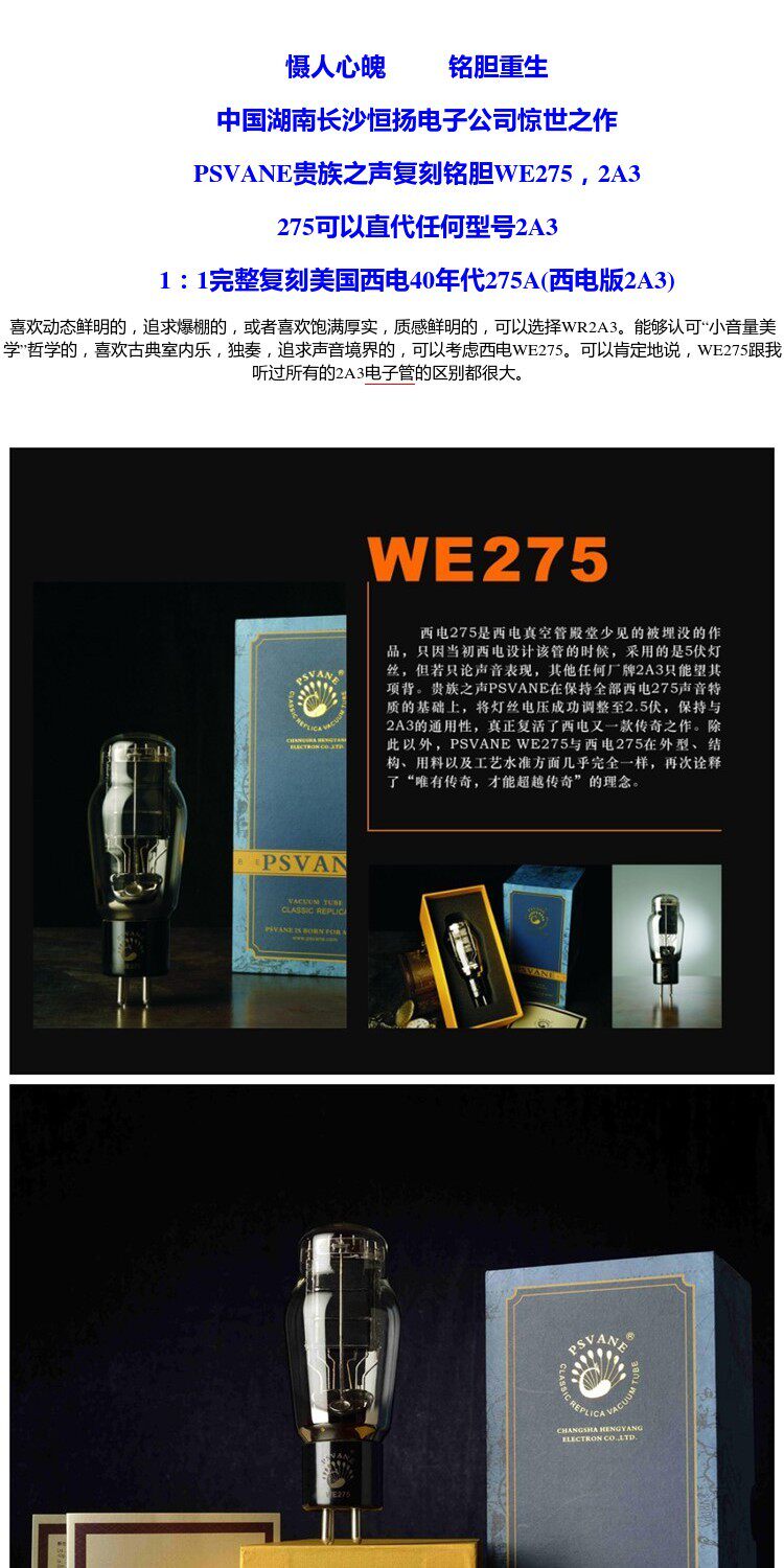 PSVAANE 1: 1 Repecte West Electric We 275 WR 2A3 Электронная трубка, два прямые поколения, разные стили