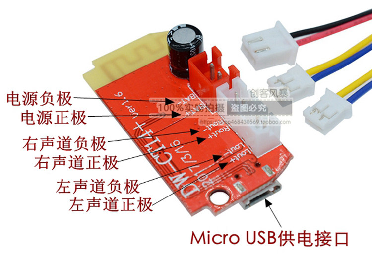 7.Этот продукт имеет свою собственную схему усилителя мощности с двойным 5 Вт.Выход двух усилителей не может быть подключен параллельно или подключен к отрицательному электроду, в противном случае он повредит чип усилителя.