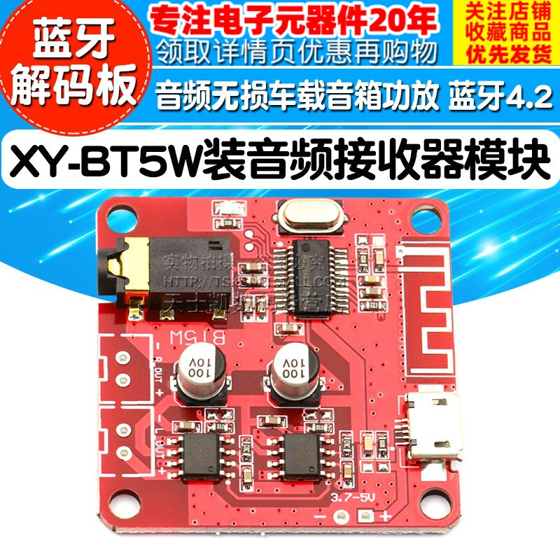 Bluetooth Decoding Poard Mp3 Audio неразрушающий носитель транспортного средства Мощный усилитель мощный усилитель модифицированный Bluetooth 4.2 Плата xy-bt5w Установка DIY Audio Module модуль 5V Усилитель Материнская плата с производством Bluetooth