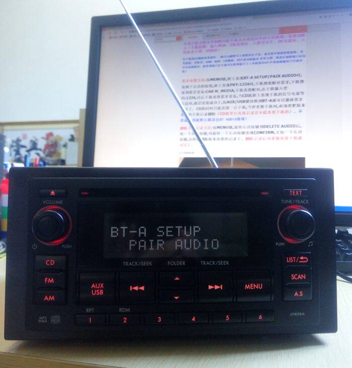 Метод соединения Bluetooth:Нажмите кнопку меню, когда на экране появляется звук настройки BT-A/пара, нажмите кнопку на правой стороне, когда PKY: 1234 появляется на экране.: Car m_media, соединение подключения мобильного телефона, ввод на мобильный телефонПароль: 1234. В будущем мобильный телефон подключен к устройству Bluetooth. Когда на экране CD появляется сигнал мобильного телефона, подключение к успеху. Нажмите клавишу AUX/USB, чтобы переключиться на BT-A на Воспроизвести Bluetooth Music.CD -машина может одновременно подключить только один телефон. Когда вы хотите изменить свой телефон, вы должны удалить оригинальную запись мобильного телефона (В компьютерной машине есть запись подключения, которая не может быть подключена к телефонуК.Нет опции BT Audio без функции Bluetooth!