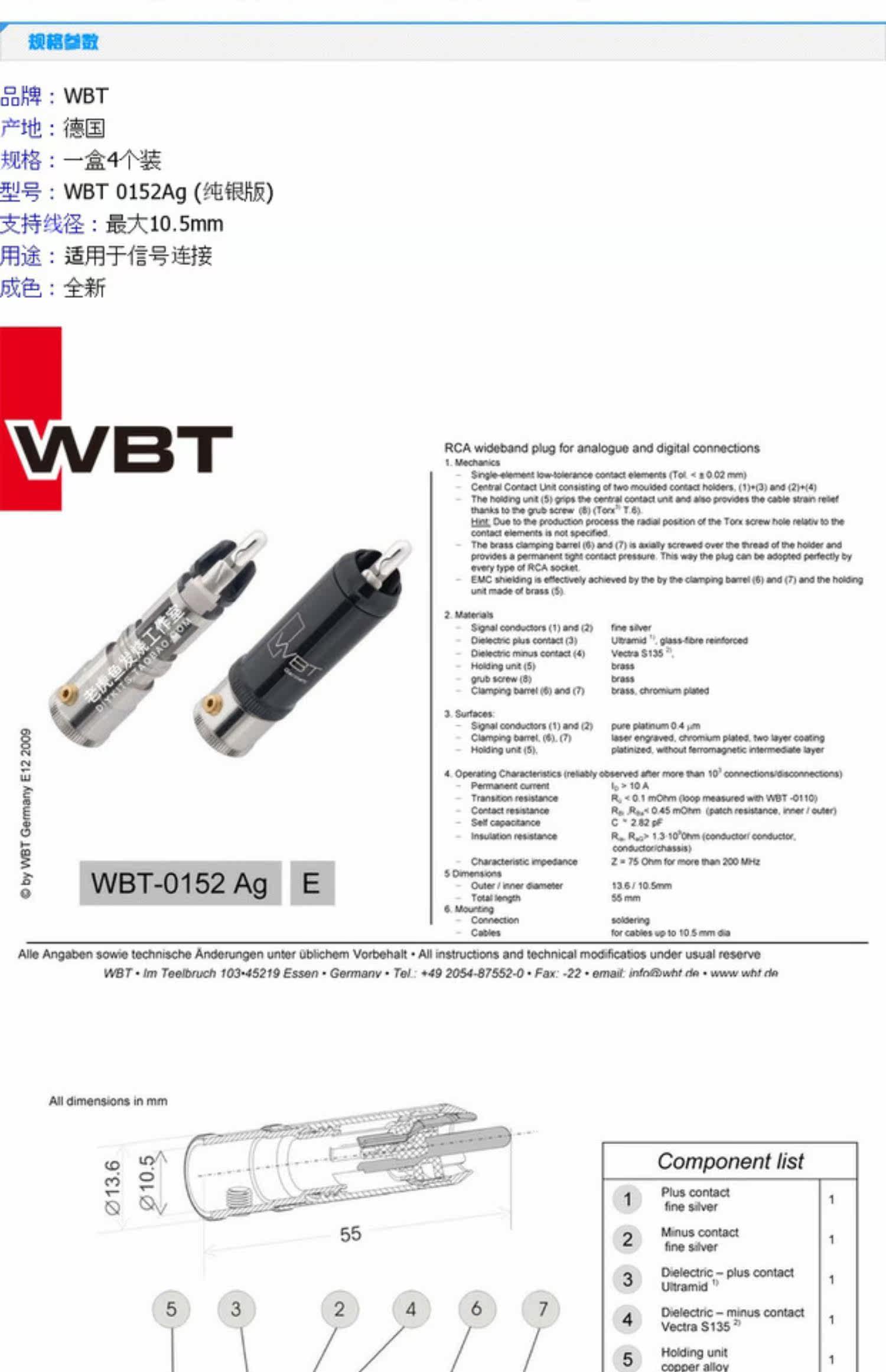 Немецкий оригинал WBT 0152AG 0152 Серебряная версия серебряной серебра