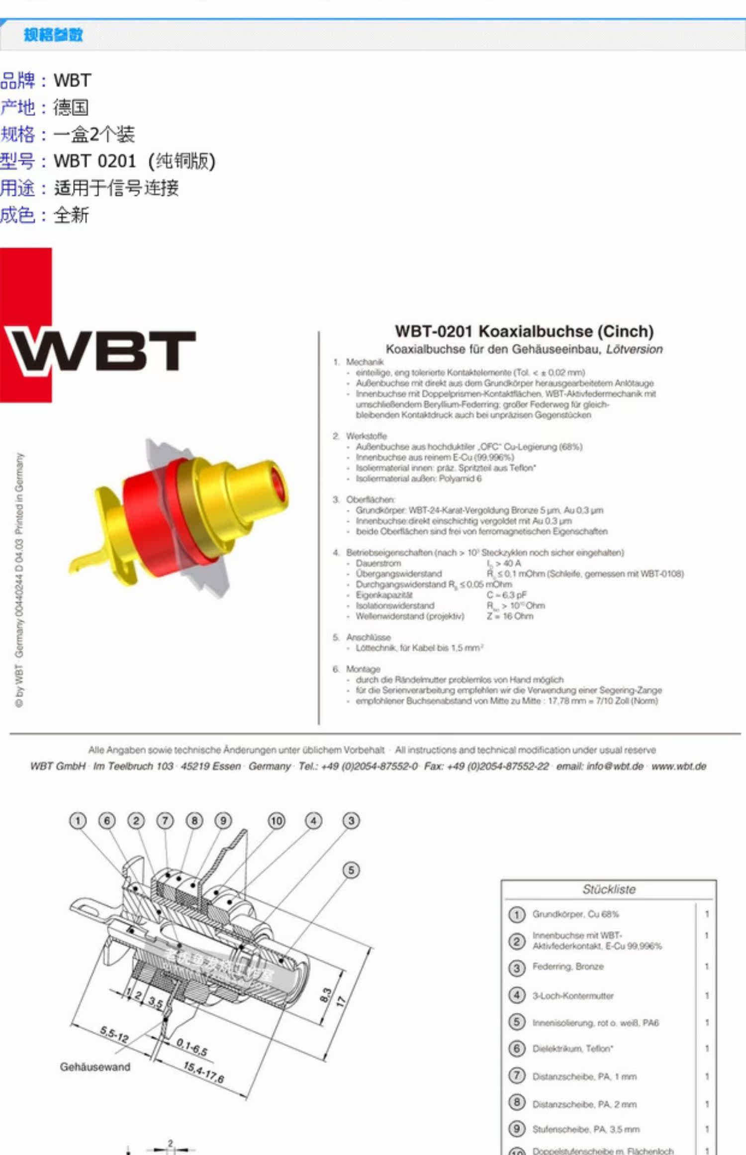 Оригинальная Германия WBT 0201 Pure Copper Hifi Fever Audio RCA Lotus Подключите коробку бесплатной доставки
