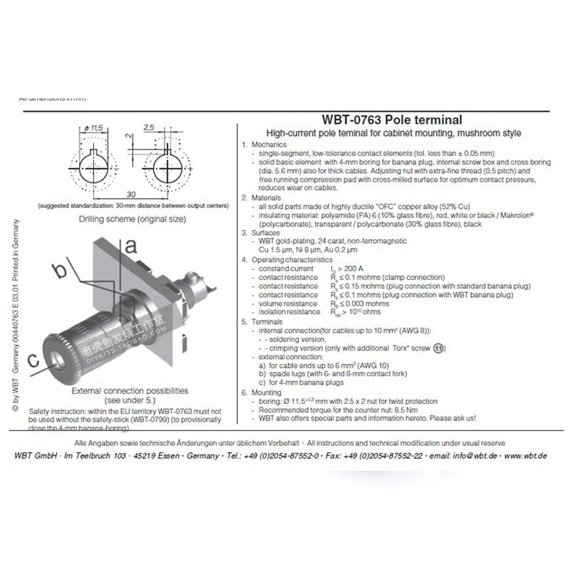 Оригинальный немецкий WBT 0763 Pure Copper Gold, навязанный на лихорадочный динамик