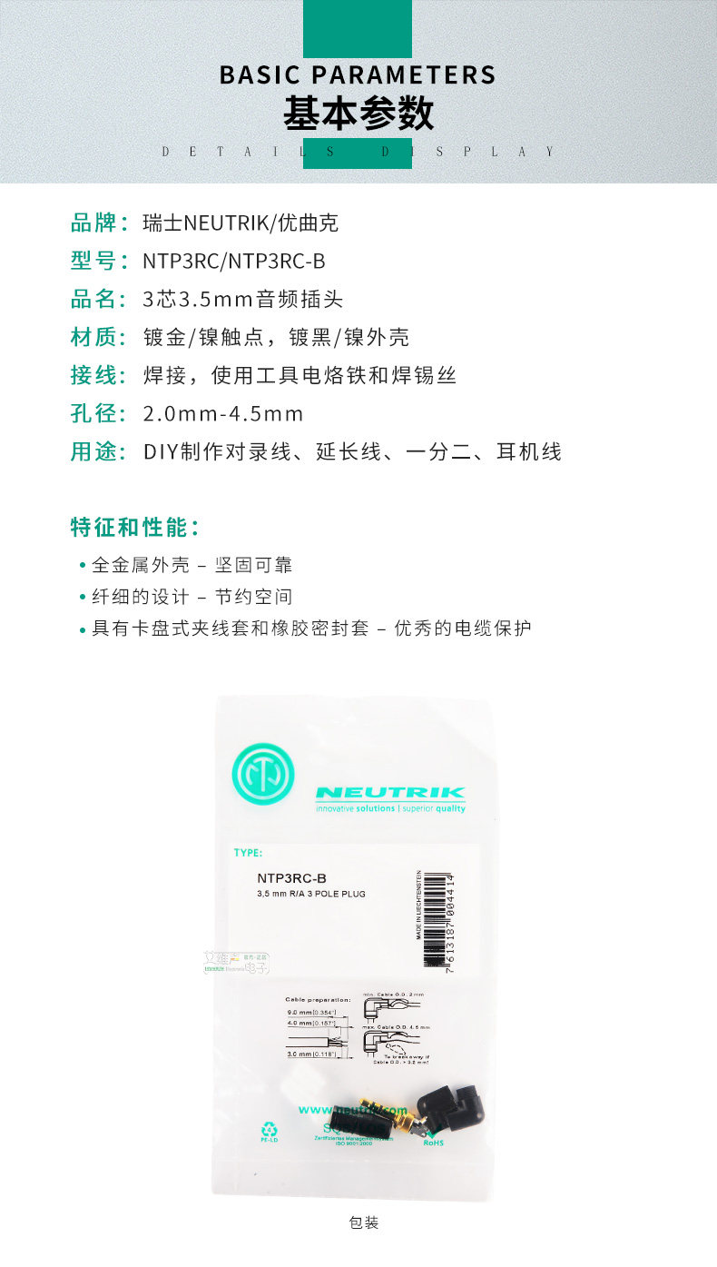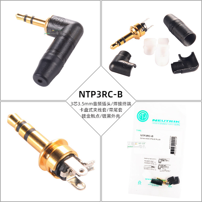 Трехмерный звук Neutrik Three-Dimension Sound 3,5 мм маленький трехъядерный золотой сварка сварки NTP3RC-B Ремонт кабеля для наушников.