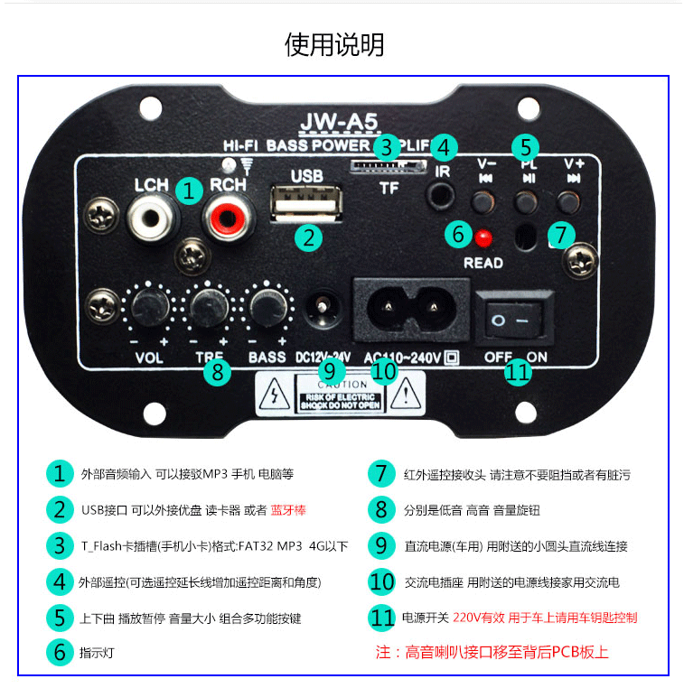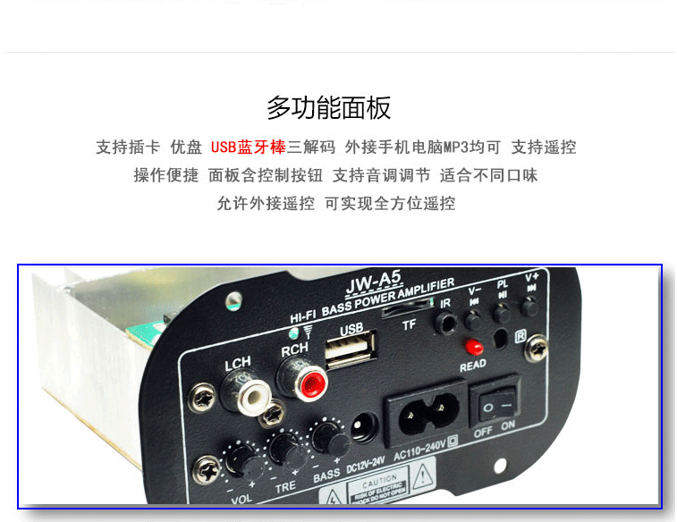 Поддержка 4-8-дюймовых различных динамиков, отправка инструкций, проводка очень проста, дядя может звучать дядя, рог может звучать, нет никакого инструмента и не бояться.Карты памяти, U -диски, стержни Bluetooth можно транслировать, ввод линии, подключение компьютерных мобильных телефонов.Домашнее использование, автомобиль также контролируется, автомобиль и мотоцикл автомобиля, автомобиль и трактор Ferrari!ПересечениеОригинальный чип с высокой мощностью, качество чистого звука является чистым и мощным! Аккумулятор использует очень экономию электроэнергии, играет не менее 10 часов подряд и отправляет шесть аксессуаров+инструкции за один шаг!