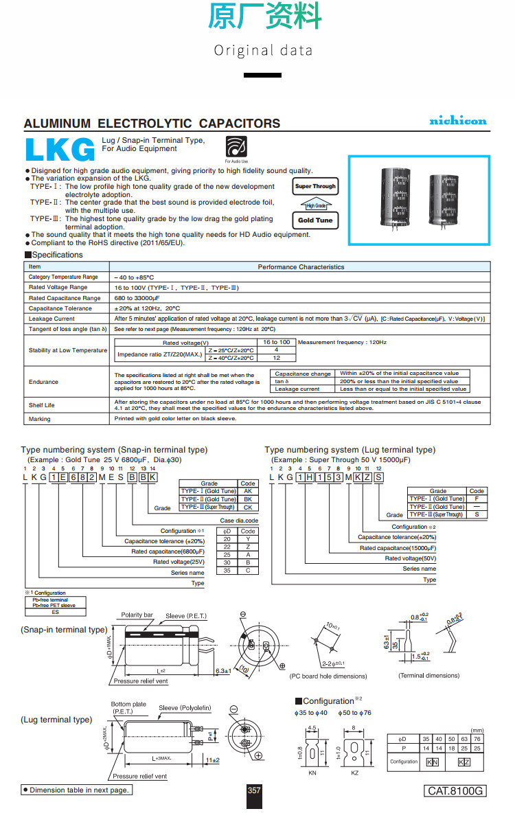 [Nichicon] KG типа II в Японии импортировал Nijikang 4700UF 35V аудиокассатор