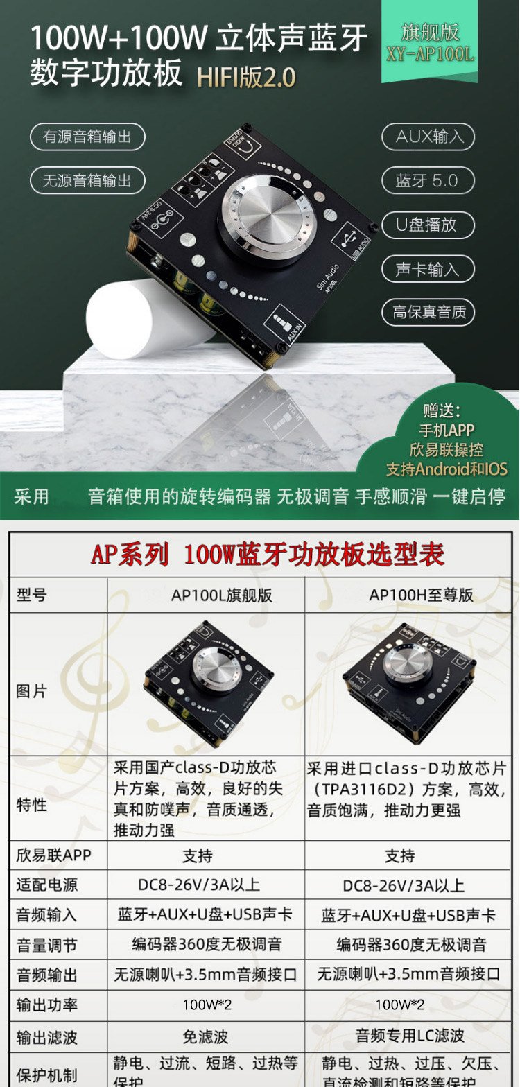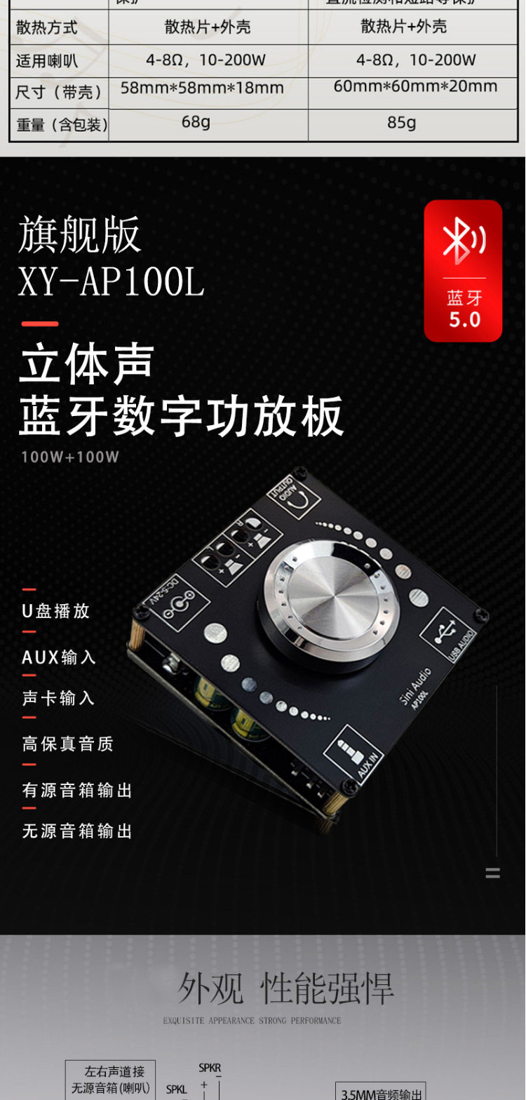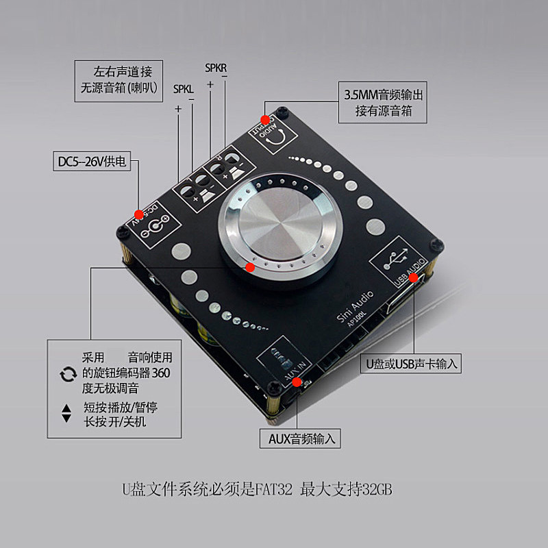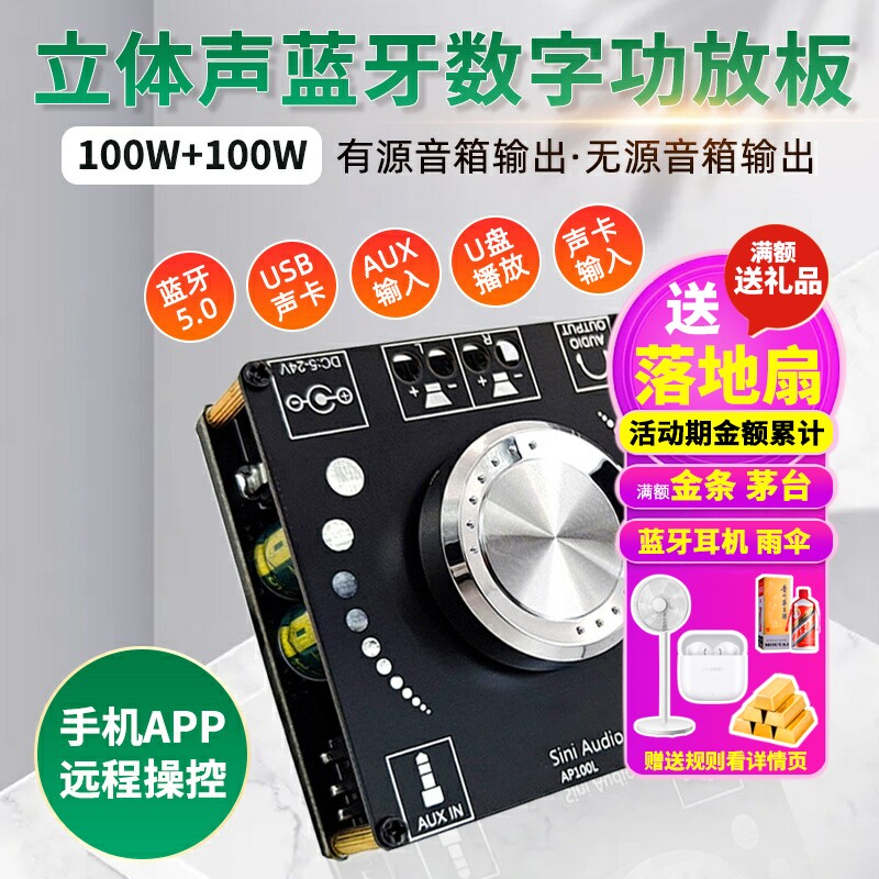 SINI AUDIO 100WX2 Стерео Bluetooth 5.0 Цифровая плата усилителя Двойной канал 360 градусов Неполярная настройка