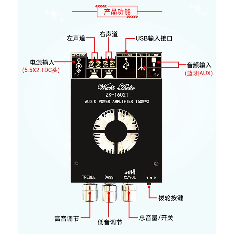 ZK-1602T Bluetooth-модуль цифровой модуль TDA7498E Высокий бас регулирующий аудио функции Bluetooth модуль Bluetooth