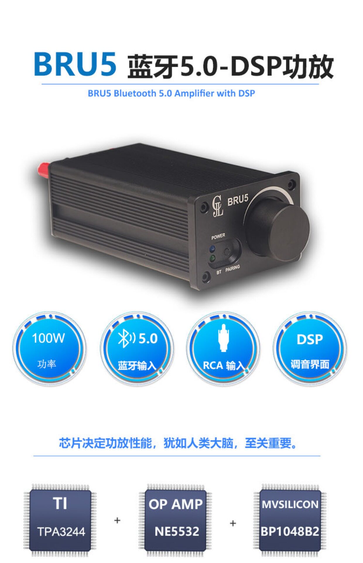 Усилитель, трехмерный модуль, 2x, x100, 100W, bluetooth, высокая мощность