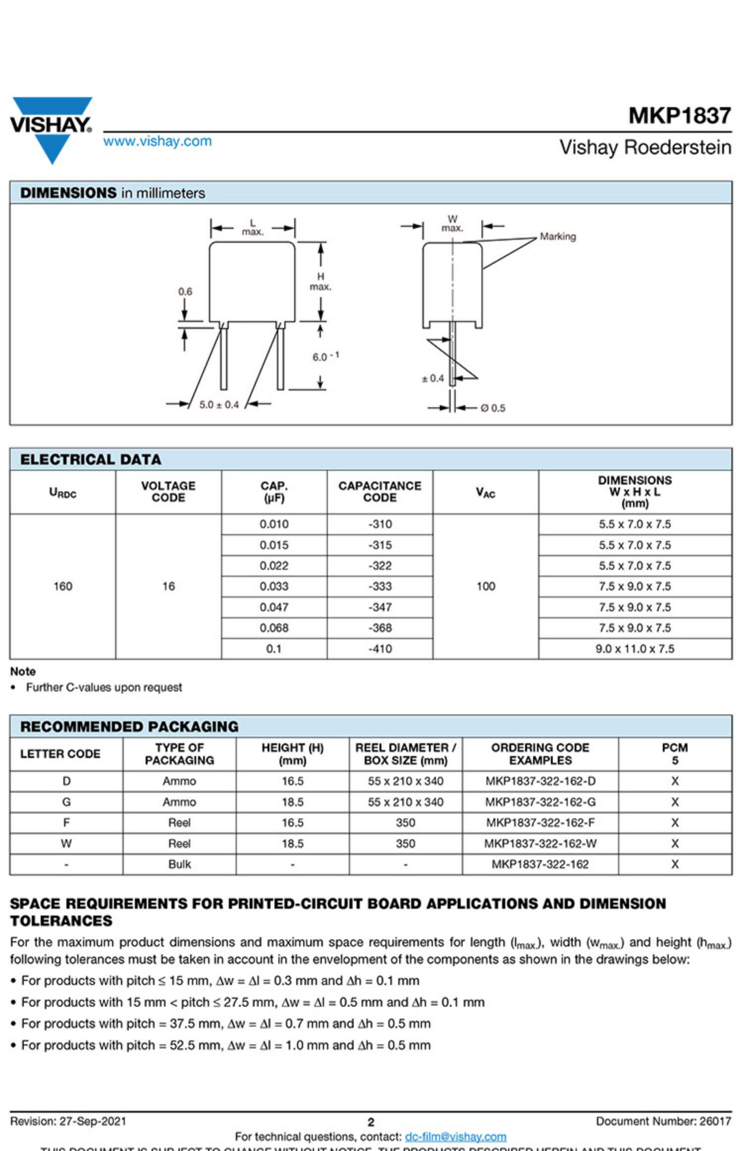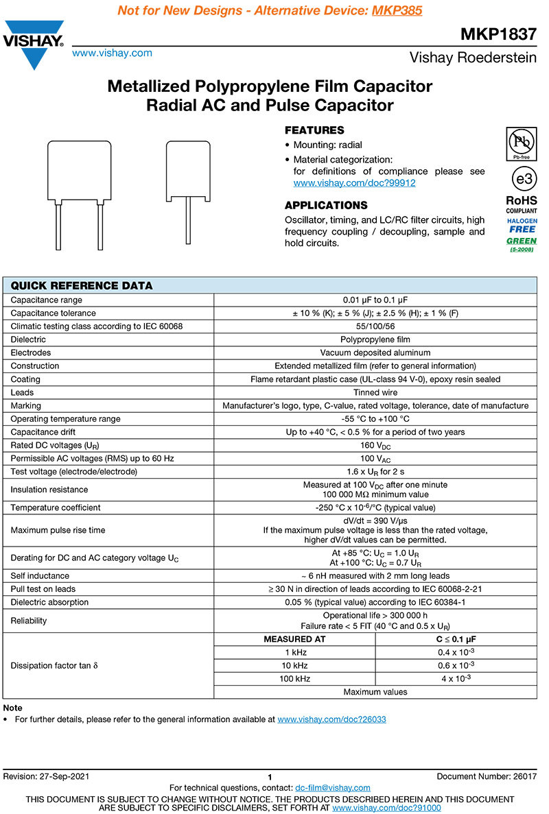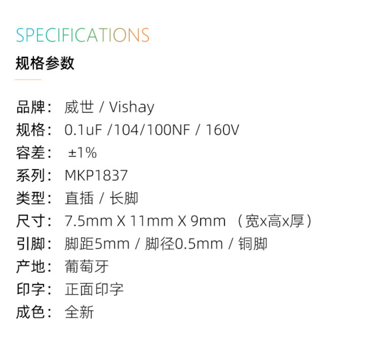 Оригинальный Вишай-Эро MKP1837 0,1 UF 160 В 1% 104/100NF Медную пленку емкость