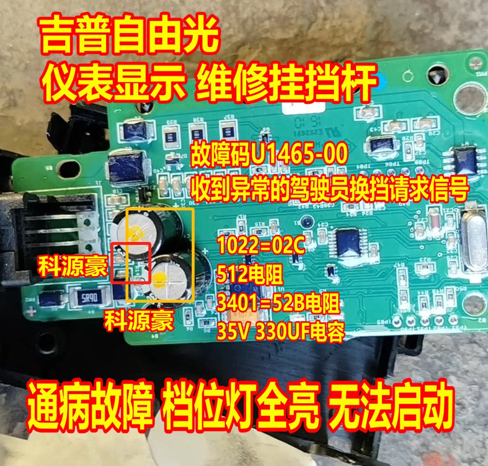 1022 512 3401 35V 330UF Jeep Free Light, индикатор переключения передач на рычаге переключения передач горит и не запускается.