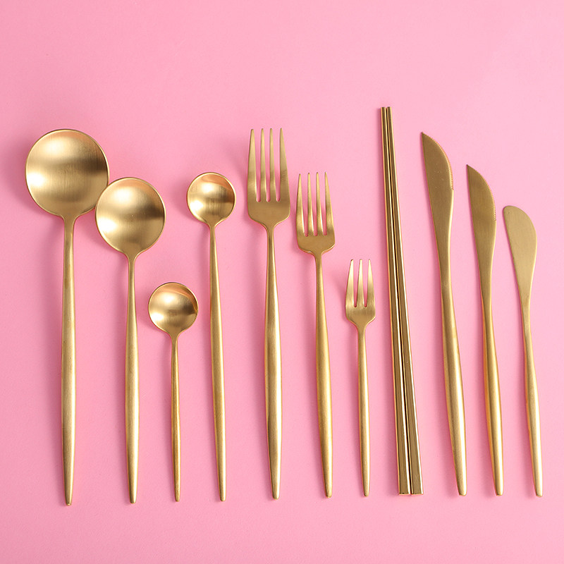 Ложка, комплект, посуда, латунная десертная вилка из нержавеющей стали, 3 предмета