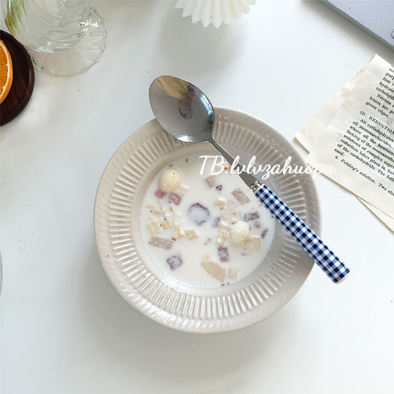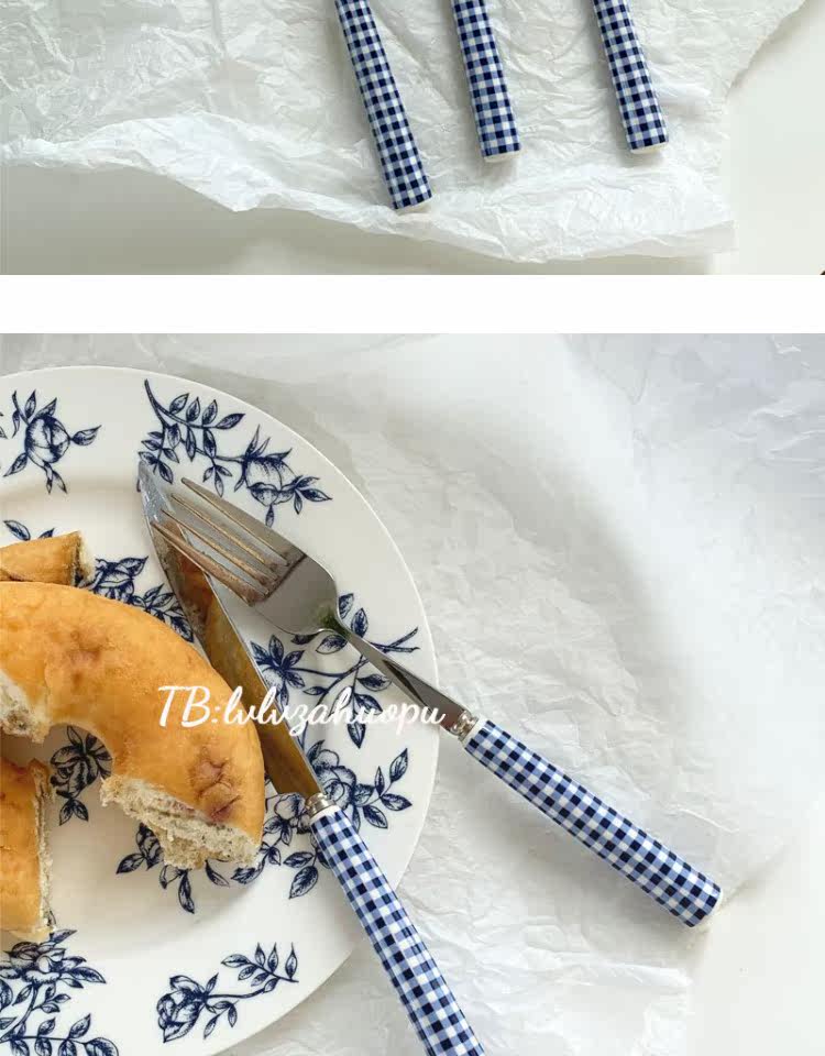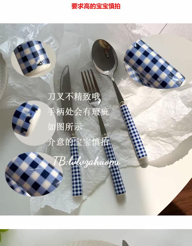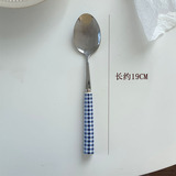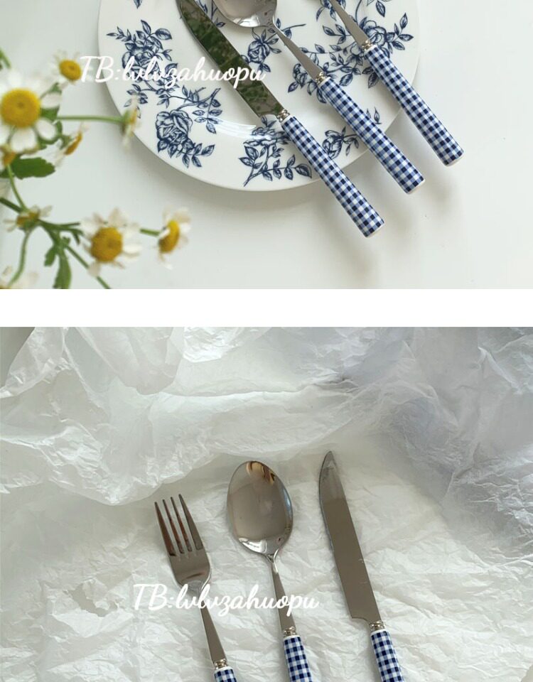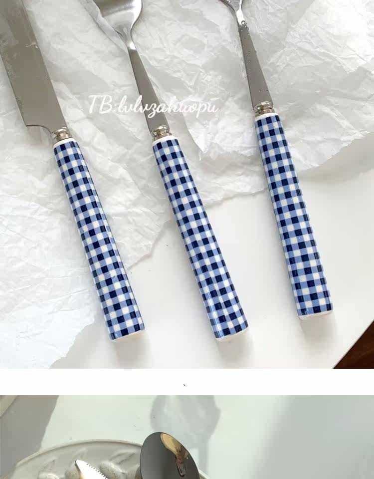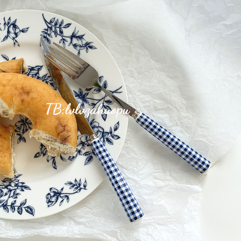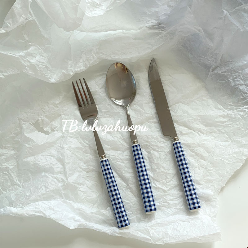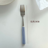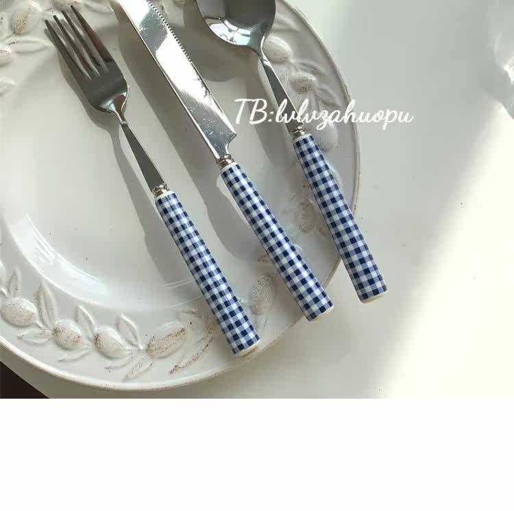 Корейский инспирм Винтер Блю Керамика Керамика Ручка ручка с кожей таблетки западный шкаф десертный десерт кража вилки таблетки