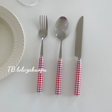 - Набор ложек из красного клетчатого ножа