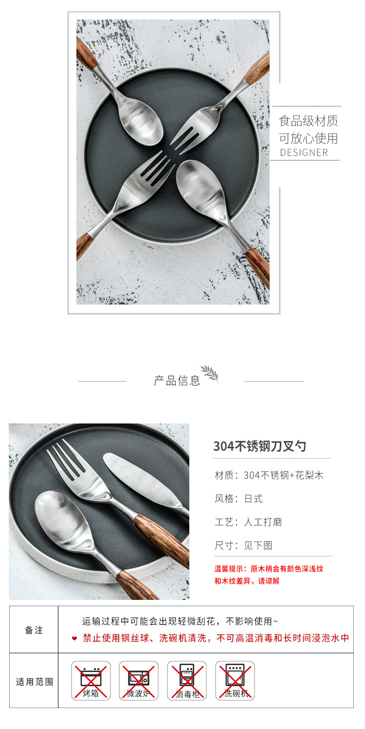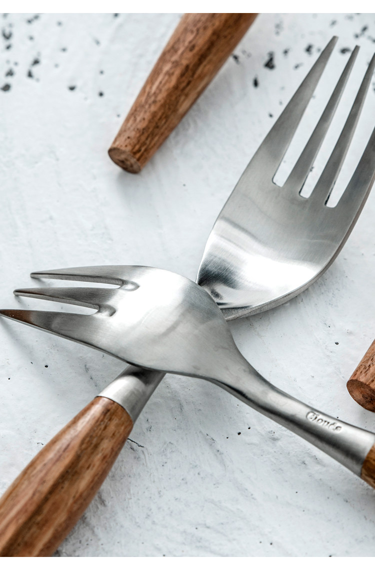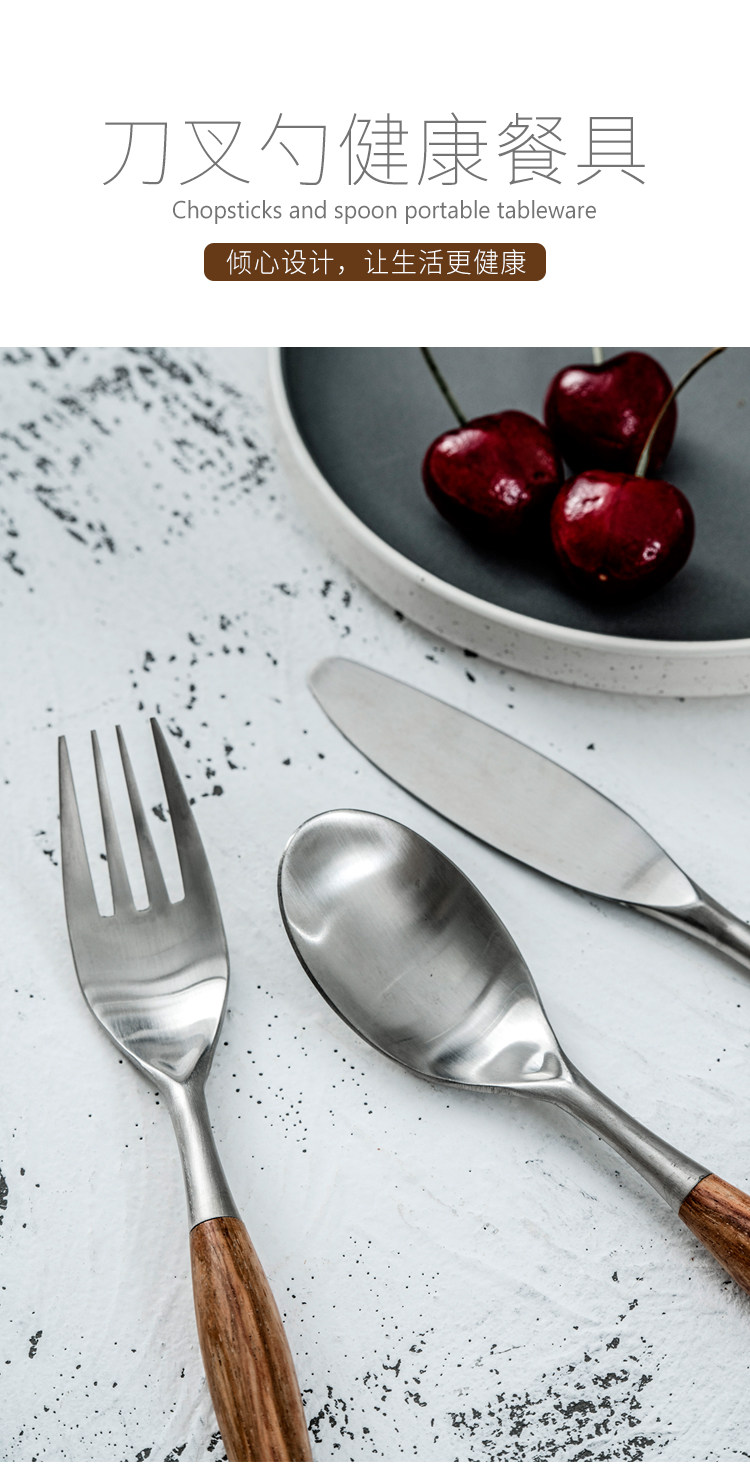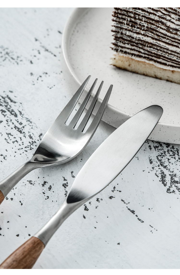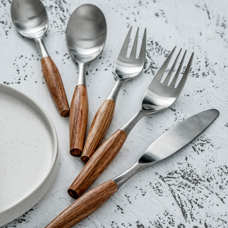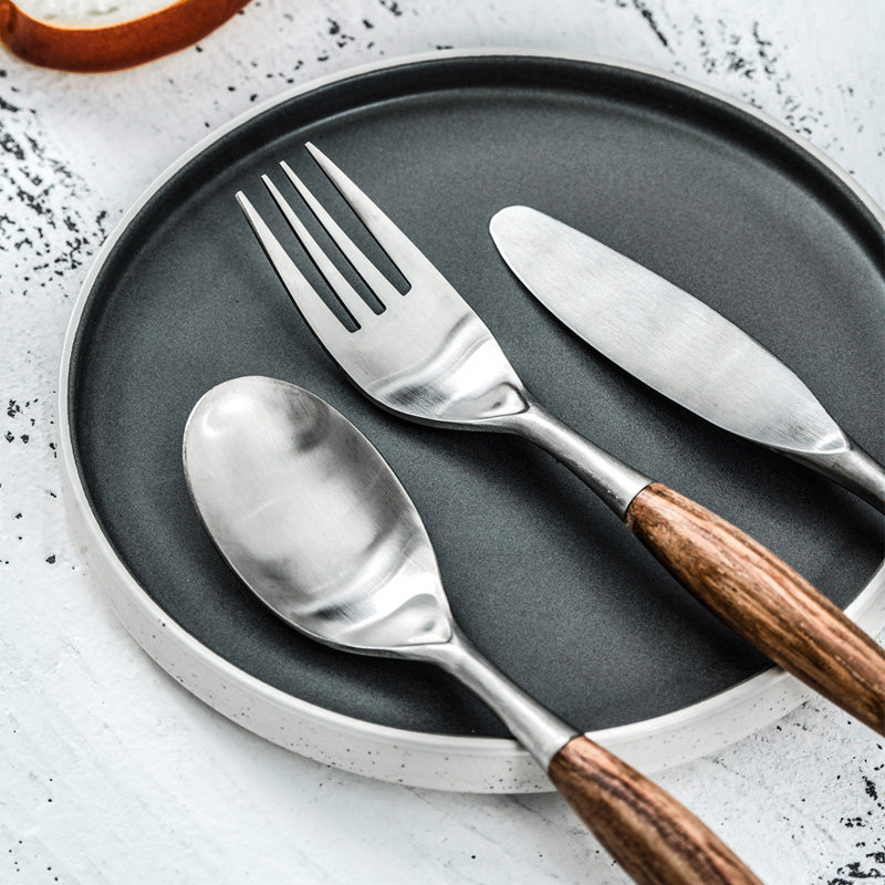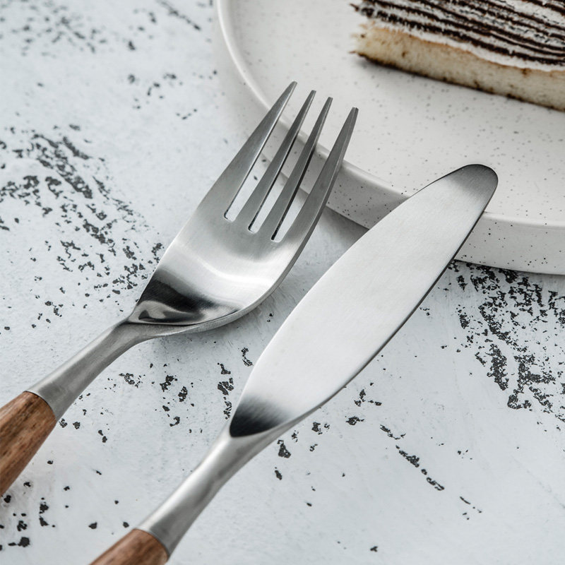 Набор посуды в скандинавском стиле, домашняя матовая нержавеющая сталь, деревянная ручка, нож и вилка, ложка для основного блюда, западная десертная ложка, десертная вилка
