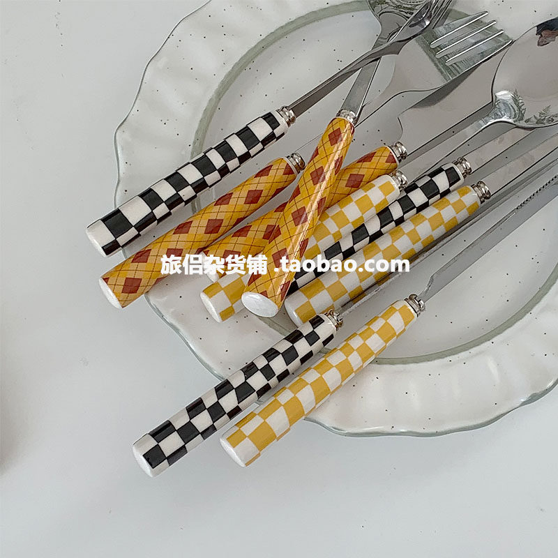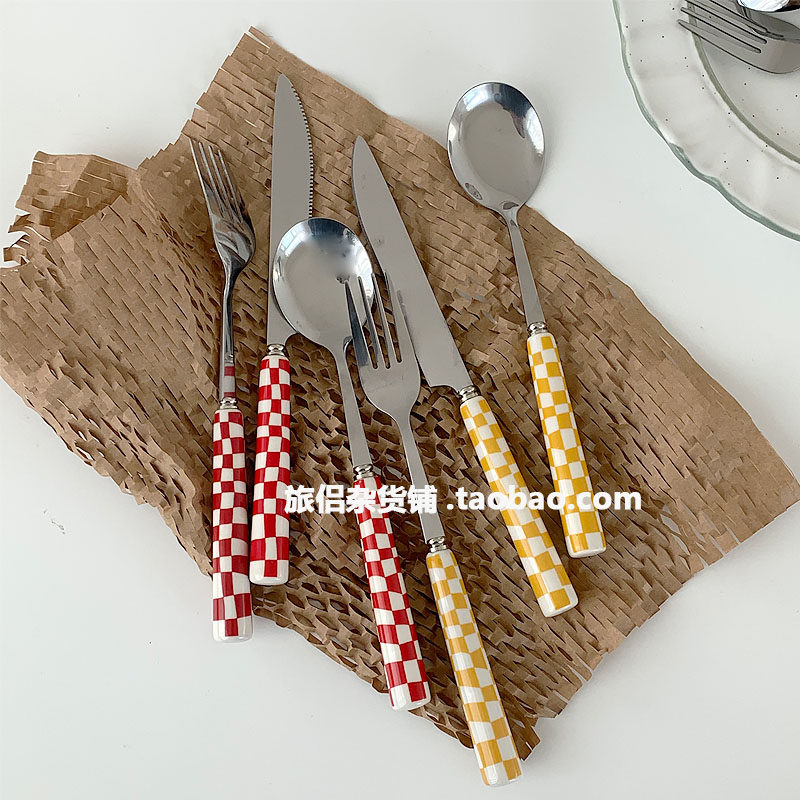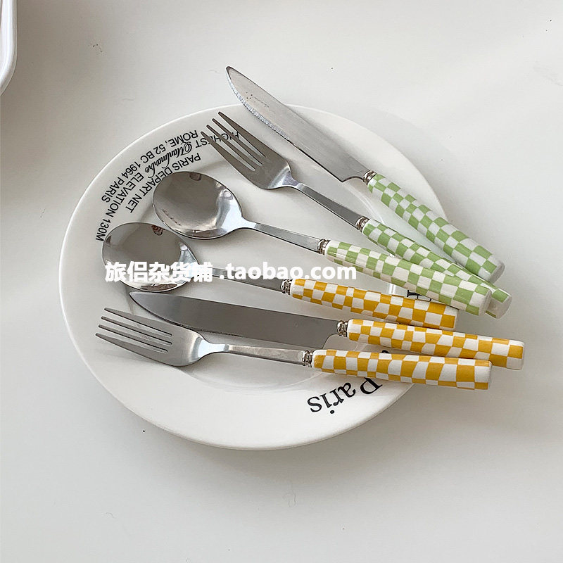 Брендовые шахматы из нержавеющей стали, посуда, комплект, вилка для фруктов, японские и корейские