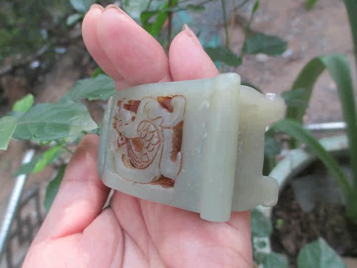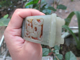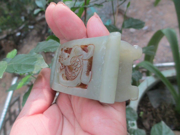 Династия Династия Полая резьба зеленого белого нефрита Большой полки сельская коллекция антикварная древняя игровая сумка старая нефритовая и старая нефритовая старая нефритовая нефрита