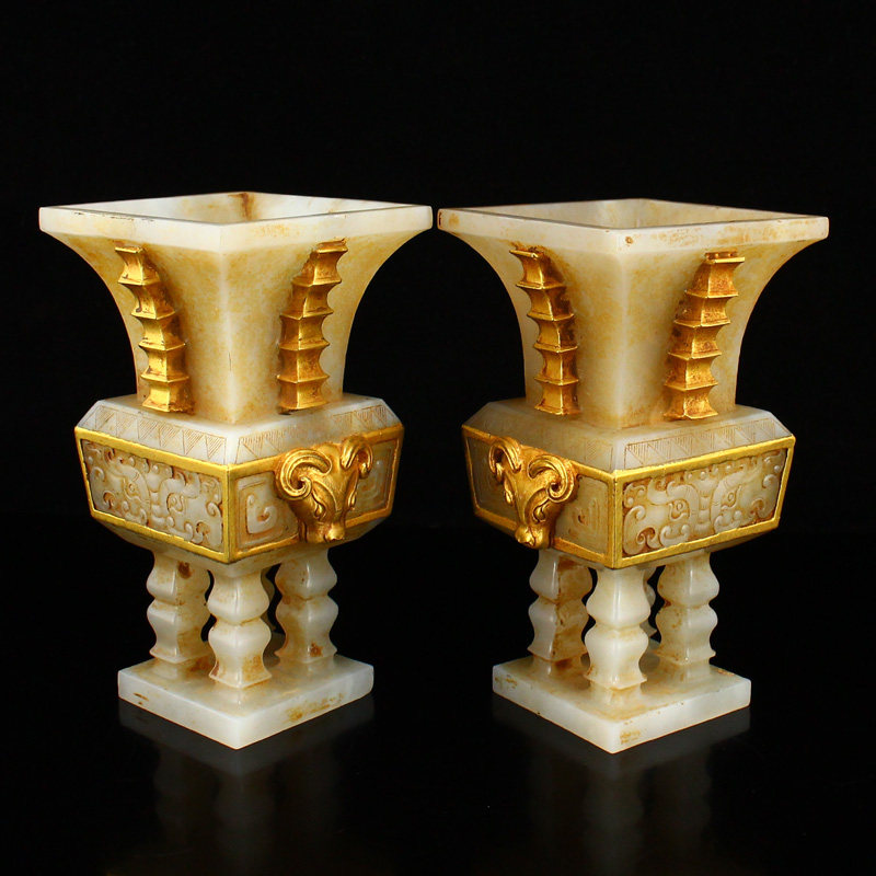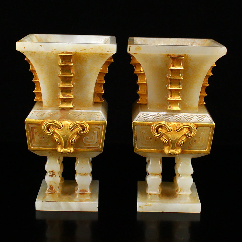 Цена укуса Синьцзян Хетиан Джейд старый нефрит -позолоченная золотая скульптура двойная овца первая зверя лапша