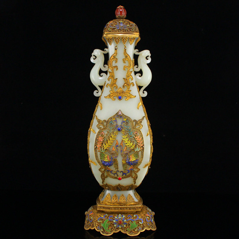Коллекция народного антиквариата по фиксированной цене, серебро 925 пробы, позолоченная филигранная точечная эмаль, инкрустация драгоценными камнями и ваза из хэтянского нефрита, орнаменты.